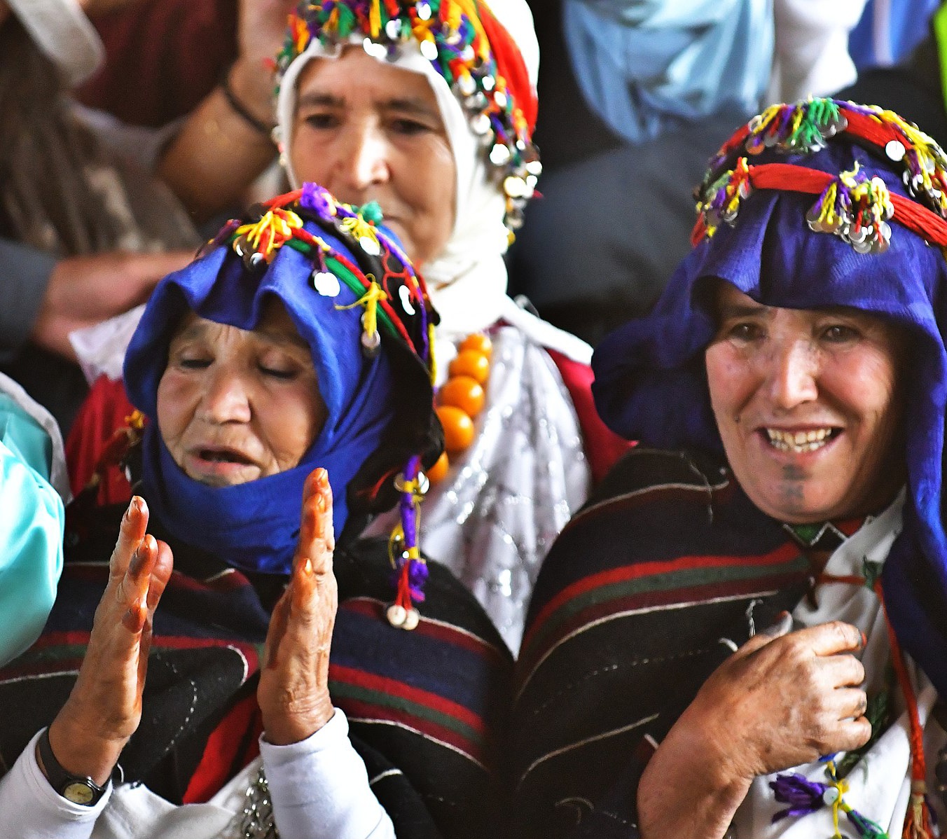 Music and dance are key parts of the festival. Local musicians play traditional Berber songs using instruments like the guembri (a type of lute) and the bendir (a hand drum). The music creates a lively atmosphere, and people often join in dance circles to celebrate together.